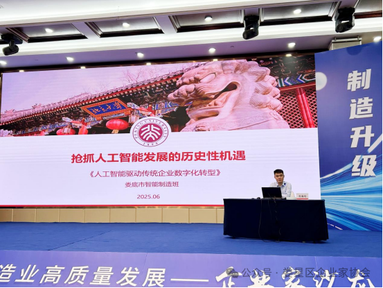 易海明主任以“制造業(yè)如何搶抓人工智能發(fā)展的歷史性機(jī)遇”為題,從認(rèn)識(shí)人工智能模型,培育人工智能模型的迫切性,培育人工智能模型的戰(zhàn)略性要素,詳解人工智能模型培育案例和趨勢(shì)四個(gè)方面系統(tǒng)剖析了人工智能技術(shù)演進(jìn)脈絡(luò)及其與制造業(yè)融合的核心場(chǎng)景,結(jié)合國(guó)內(nèi)外標(biāo)桿案例,為在場(chǎng)企業(yè)家描繪了AI賦能研發(fā)設(shè)計(jì)、生產(chǎn)流程優(yōu)化、供應(yīng)鏈管理、質(zhì)量控制和精準(zhǔn)營(yíng)銷的全鏈條圖景。互動(dòng)環(huán)節(jié),企業(yè)家結(jié)合自身轉(zhuǎn)型痛點(diǎn)踴躍提問,易主任就技術(shù)選型、投入產(chǎn)出比、安全風(fēng)險(xiǎn)等實(shí)際問題進(jìn)行了針對(duì)性解答,現(xiàn)場(chǎng)交流氣氛熱烈。