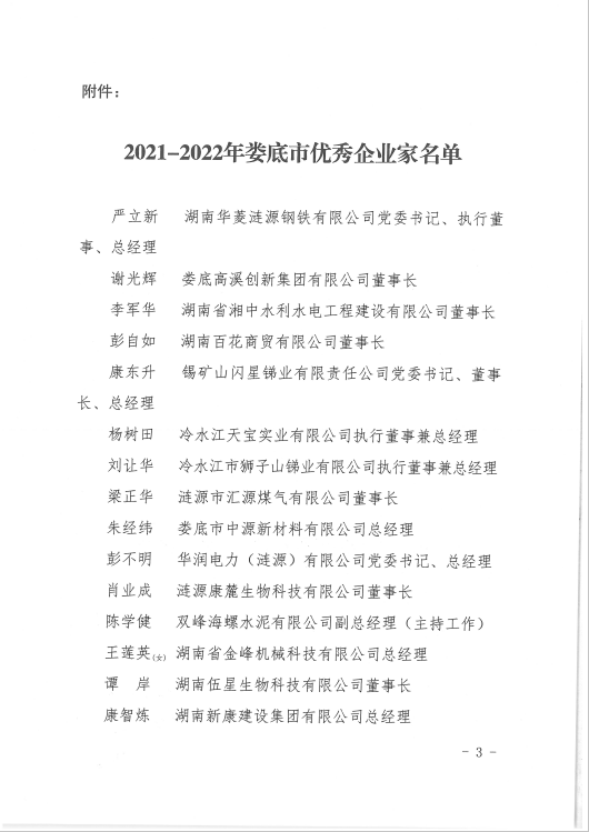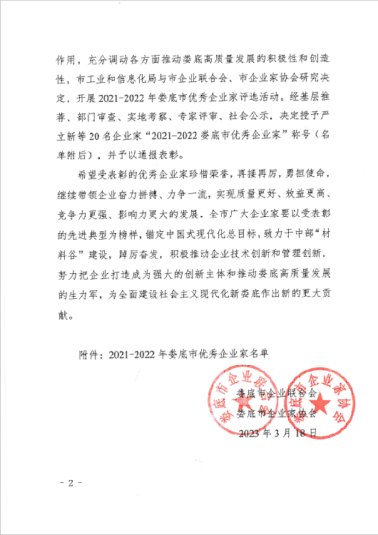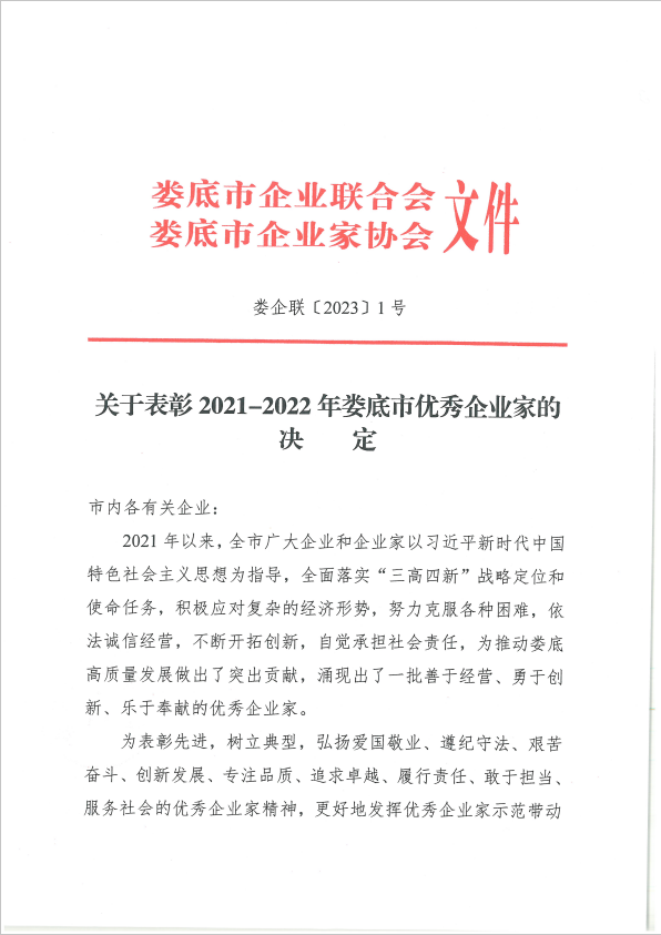關于表彰2021-2022年婁底市優(yōu)秀企業(yè)家的決定