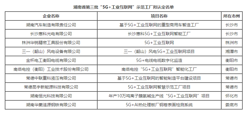 關(guān)于湖南省第三批“5G+工業(yè)互聯(lián)網(wǎng)”示范工廠擬認(rèn)定名單的公示